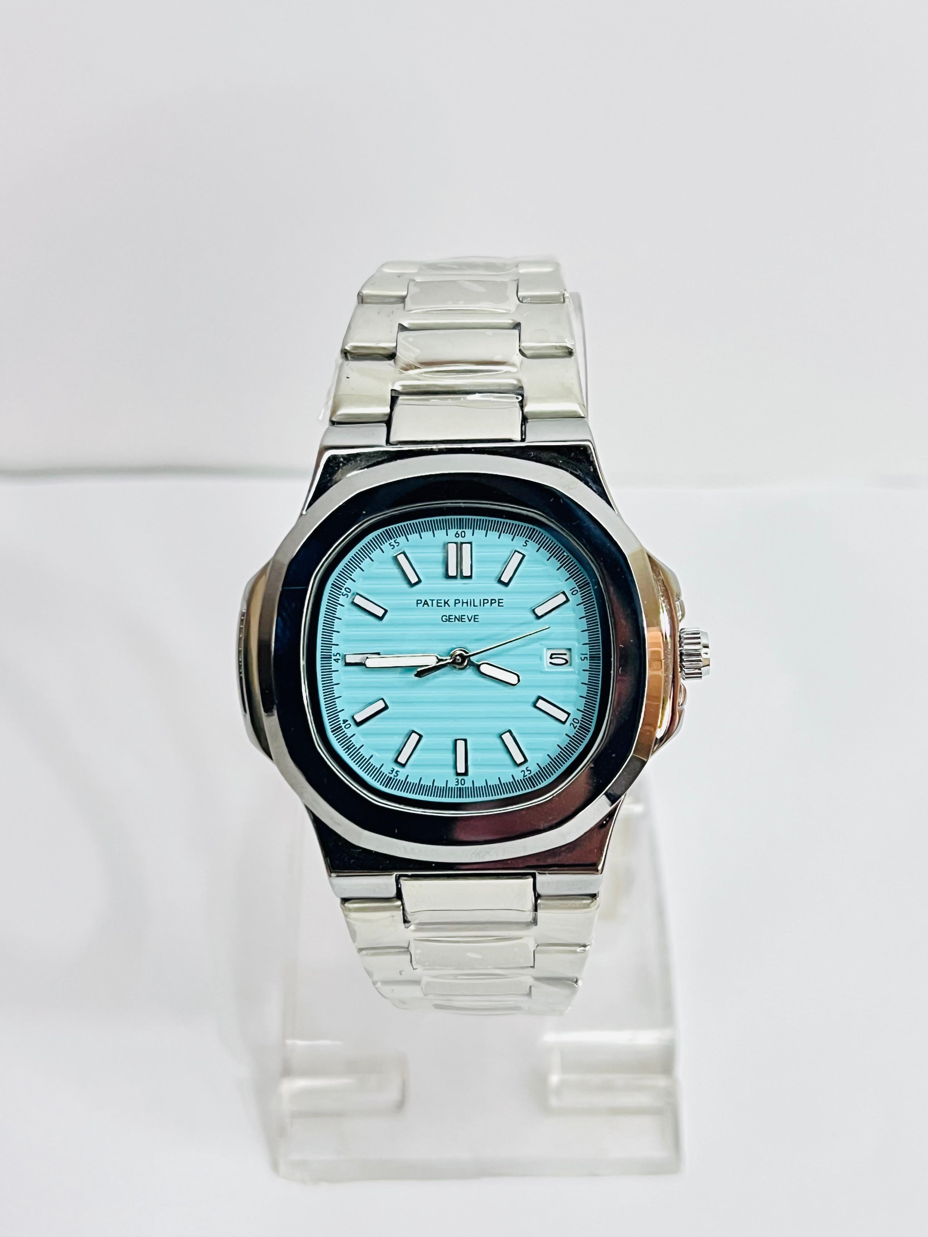 Patek Philippe Silver Chain Watch With Aqua Dial And Date