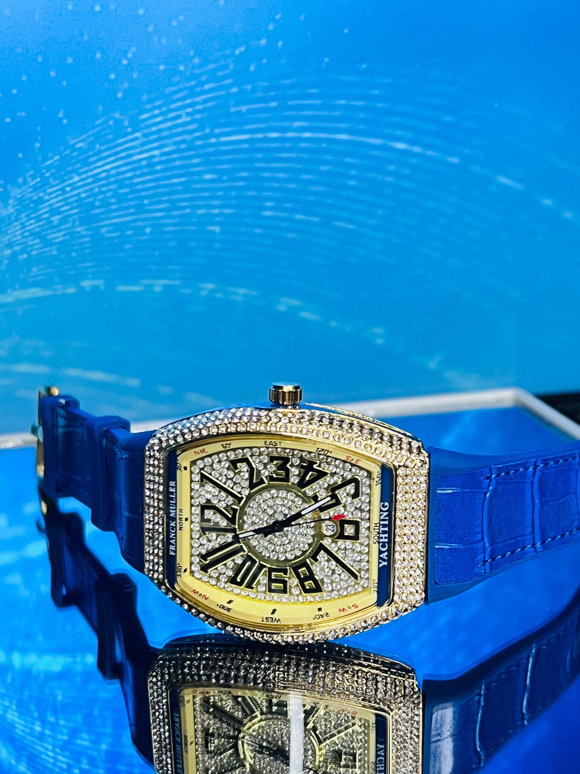 Franck Muller Blue Leather Strap Watch With Diamond Dial And Date